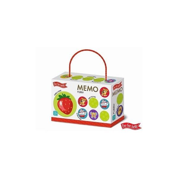 Far Far Land Pexeso kolečka. Balení obsahuje 28 kartiček ve tvaru kolečka s obrázky. Uspořádejte skutečný trénink pro vaši paměť s deskovou hrou pexeso. Podívejte se na dvojice stejných obrázků se zvířaty mezi 28 kartonovými čipy a bavte se s celou rodinou!“ Doporučený věk: od 3 let