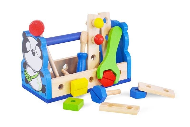 Skrzynka drewniana z narzędziami - panda.W zestawie:skrzynka na narzędzia,klucz,śrubokręt,deseczki,śrubki,nakrętki. prečítať celé