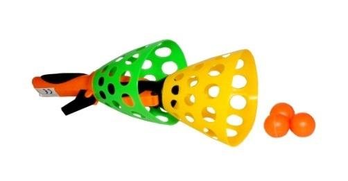 Gra zręcznościowa "łapacz" polegająca na wystrzeliwaniu piłki przy pomocy wyrzutni, którą następnie druga osoba musi złapać do "koszyka" przymocowanego do rękojeści. Podobnie jak w tenisie stołowym nadaje się do samodzielnych ćwiczeń poprzez odbijanie piłki o pionową przeszkodę. Produkt...