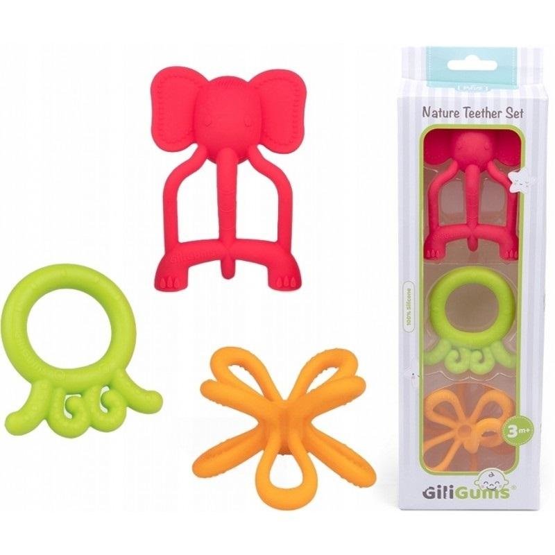 Zestaw silikonowych gryzaków w soczystych kolorach sprawdzi się idealnie zarówno w domu, jak i podczas podróży. W opakowaniu znajdziemy aż 3 gryzaczki: czerwonego słonia, zieloną ośmiornicę oraz pomarańczowy kwiatek. Każdy z niech jest idealnie dostosowany do małych rączek, a na swojej...