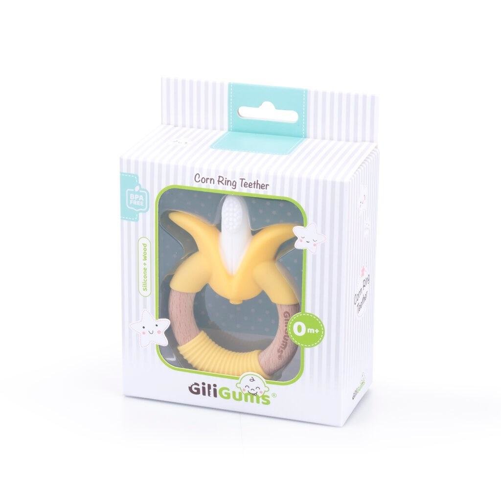 Zaprzyjaźnij się z naturą, odkrywając drewnianą kolekcję Giligums! Gryzak wykonany został z drewna bukowego oraz bezpiecznego silikonu. Pierścień posiada antypoślizgowy element, ułatwiający małym rączkom trzymanie gryzaka. Na kolbie kukurydzy kryją się wypustki do masowania dziąseł, które przyniosą ulgę ząbkującemu maluchowi.