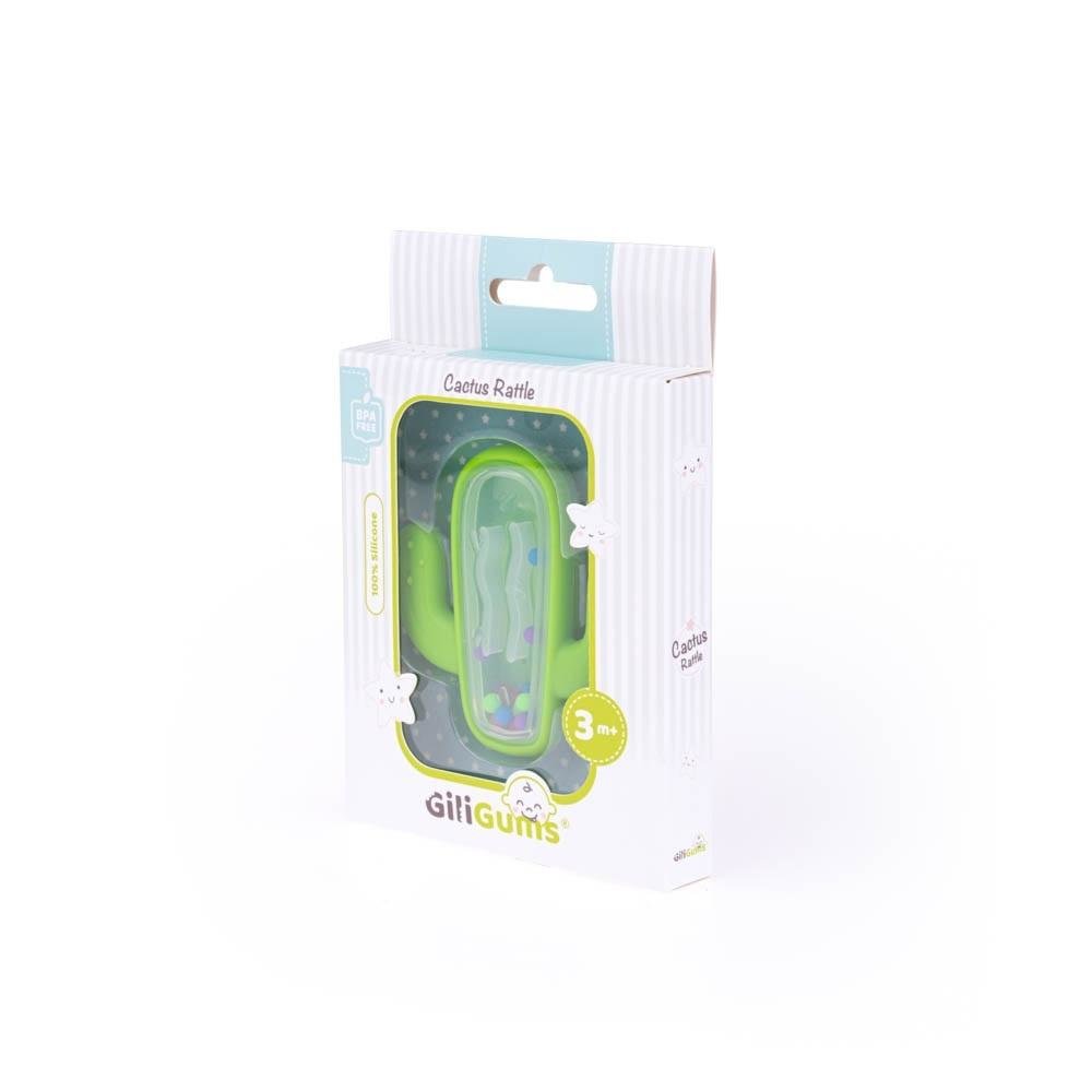 Urocza zabawka w kształcie kaktusa łączy w sobie walory grzechotki i gryzaka! We wnętrzu kaktusa kryje się mnóstwo kolorowych, grzechoczących kuleczek, a jego ramiona zdobią wypustki, które przyniosą ulgę ząbkującemu maluchowi. Kształt zabawki jest idealnie dopasowany do małych rączek, co ułatwia najmłodszym chwytanie grzechotki.