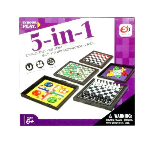 Zestaw 5 gier planszowych w jednym opakowaniu. Są to m.in. szachy, warcaby, chińczyk i gra węże i drabiny. Wszystkie gry są magnetyczne. Dzięki przjemnemu formatowi można zabrać je ze sobą nawet w podróż umilając sobie czas spędzony poza domem. Produkt zapakowany w kartonowe opakowanie. Podane wymiary są wymiarami opakowania.