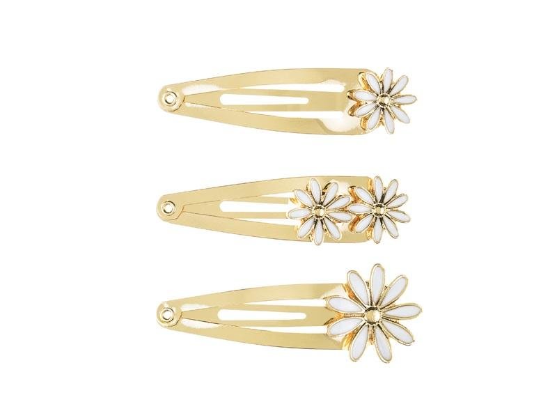 Spinki do włosów Stokrotki, metalowe spinki w kolorze złotym z białymi elementami, zestaw zawiera 3 elementy, wymiary ok. 5 x 1.5 - 2 cm.(1 op. / 3 szt.) prečítať celé