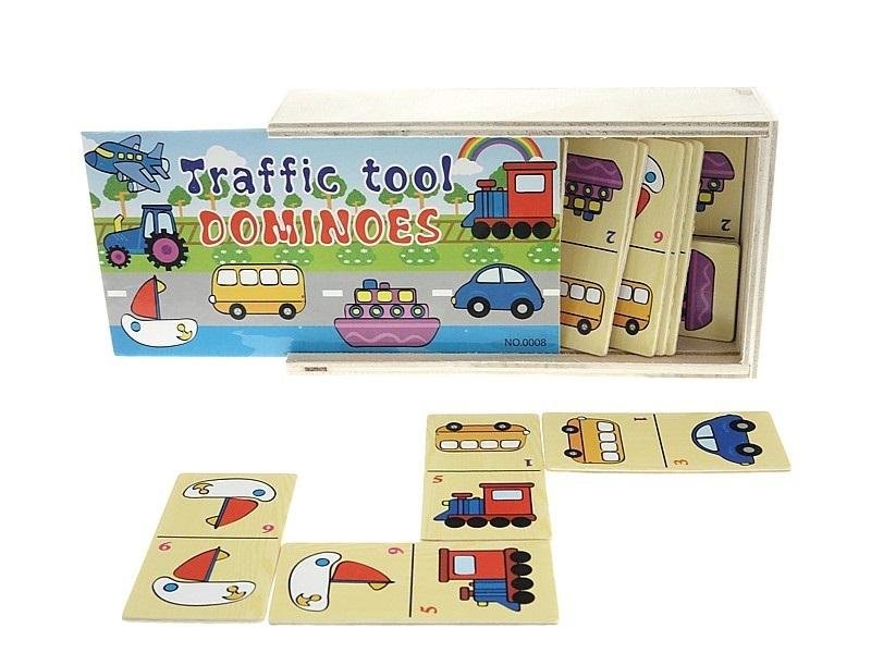 Domino obrazkowe drewniane pojazdy 15x8,5x4cm