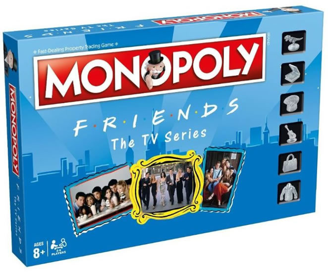 Kdo by neznal již legendární seriál Přátelé… Nastal čas se připojit k nejlepším kamarádům a usednout na oranžovou sedačku v kavárně Central Perk s hrou Friends of Monopoly. Hrajte buď jako Ross, Rachel, Phoebe, Monica, Joey nebo Chandler a vyberte si jeden z exkluzivních žetonů, který danou postavu znázorňuje.