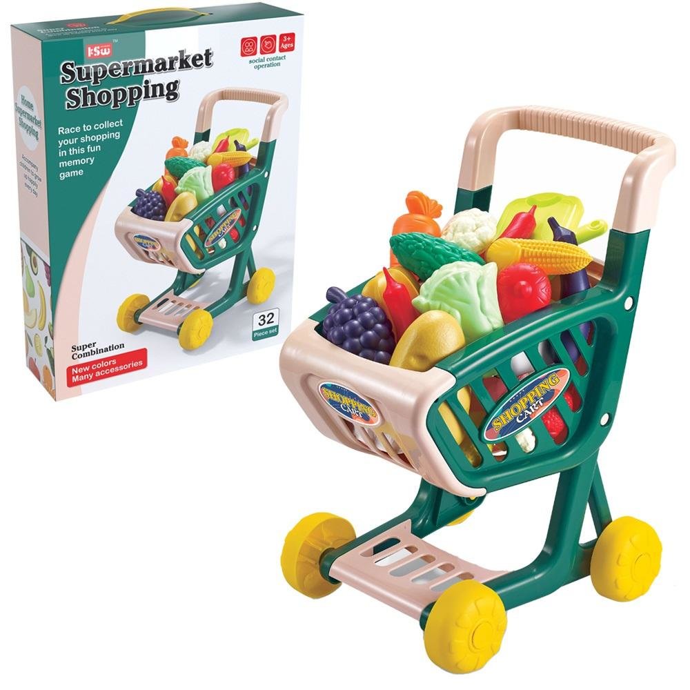 Wózek sklepowy z plastikowymi owocami, warzywami i innymi produktami spożywczymi. Zestaw zawiera 32 elementy Wysokość wózka - 40,2 cm Wymiary opakowania: 33 x 10 x 43 cm prečítať celé