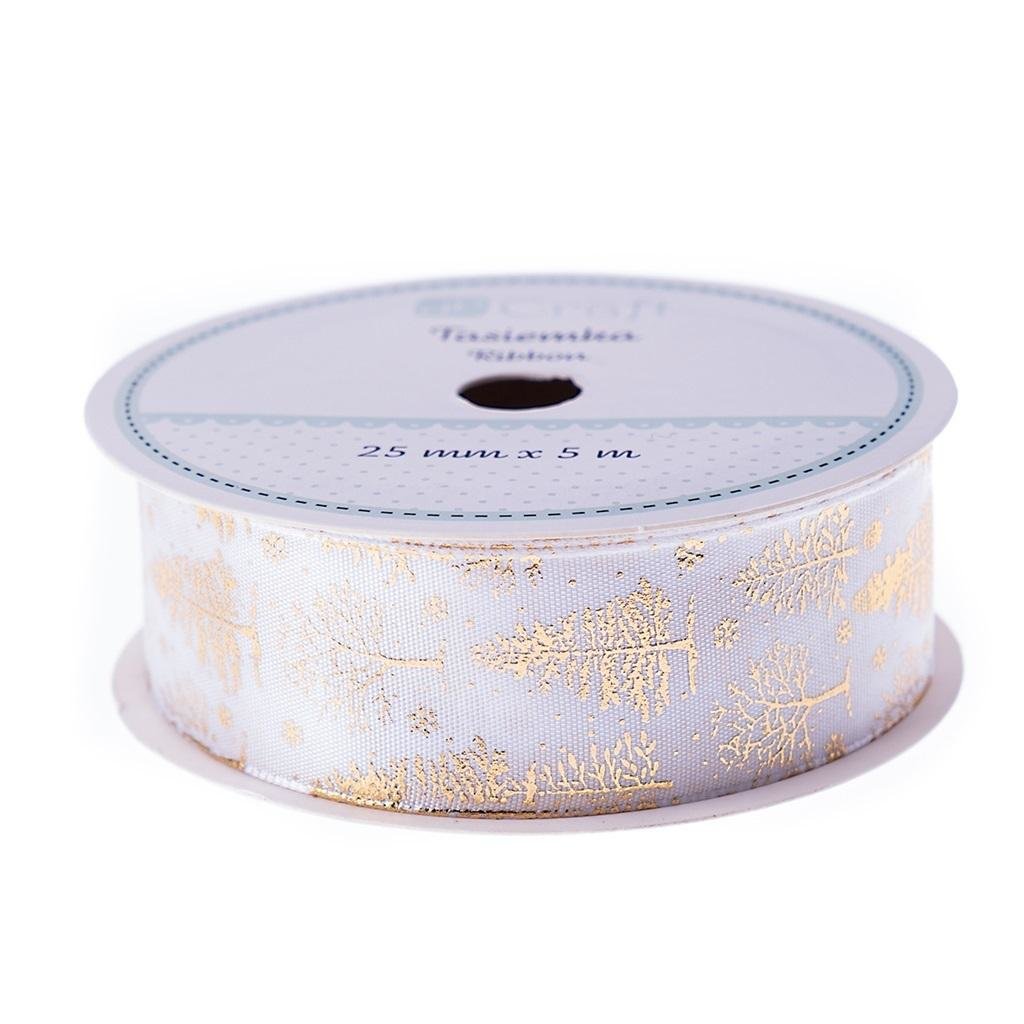 Satynowa tasiemka dekoracyjna w eleganckiej bieli ze złotym motywem drzewek, choinek i płatków śniegu.Doda blasku świątecznym i zimowym stroikom, kartkom oraz ozdobom. Idealnie sprawdzi się do pakowania prezentów.Szerokość: 2,5 cmDługość: 5 m prečítať celé