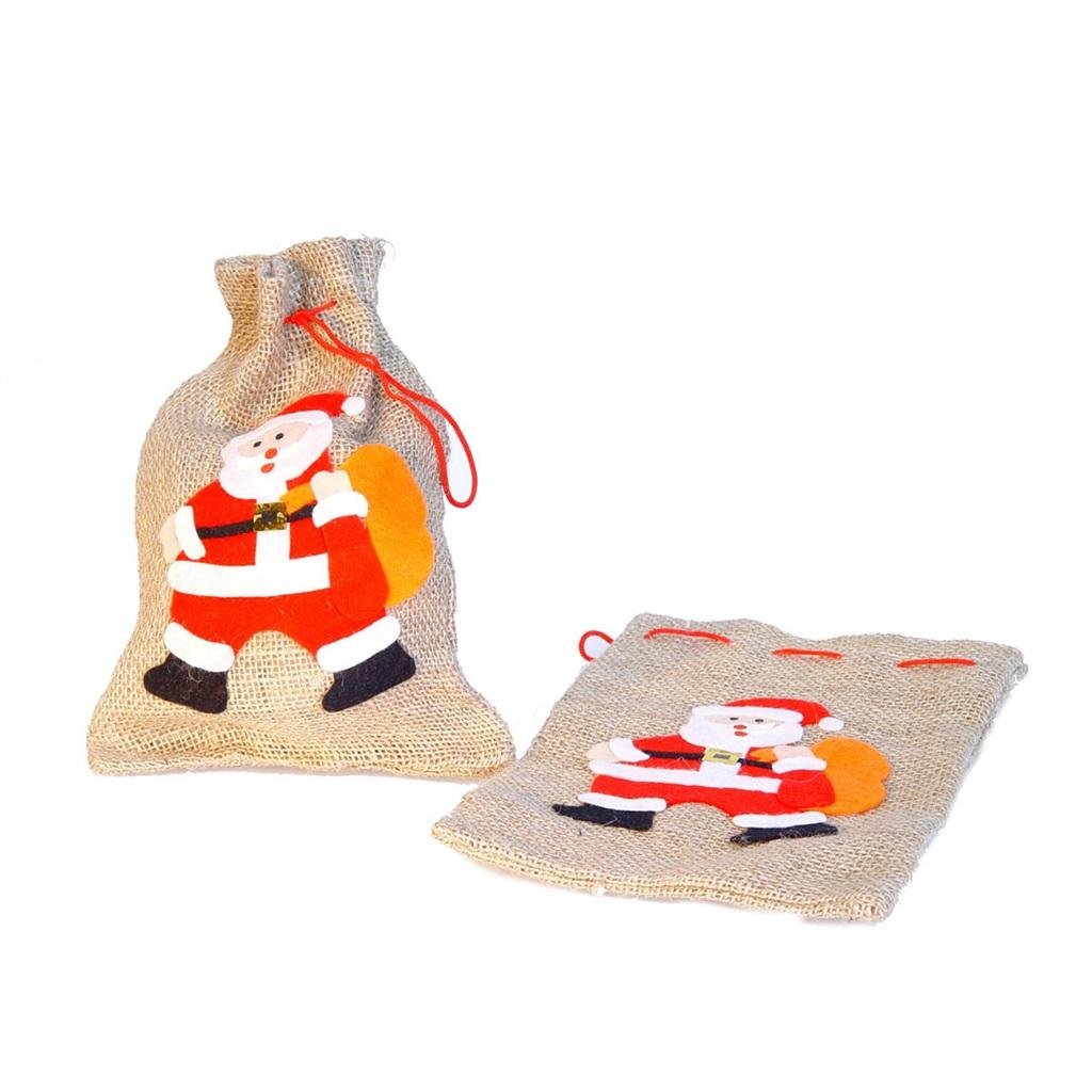 Worek na prezenty wykonany z naturalnego materiału jutowego. Na przodzie produktu znajduje się aplikacja dekoracyjna z filcu. Produkt wyposażony w sznurek ściągający umożliwiający zawiązanie worka. Worek może służyć jako element dekoracyjny lub jako wyjątkowe opakowanie prezentu. Wymiary worka to 26x20 cm.