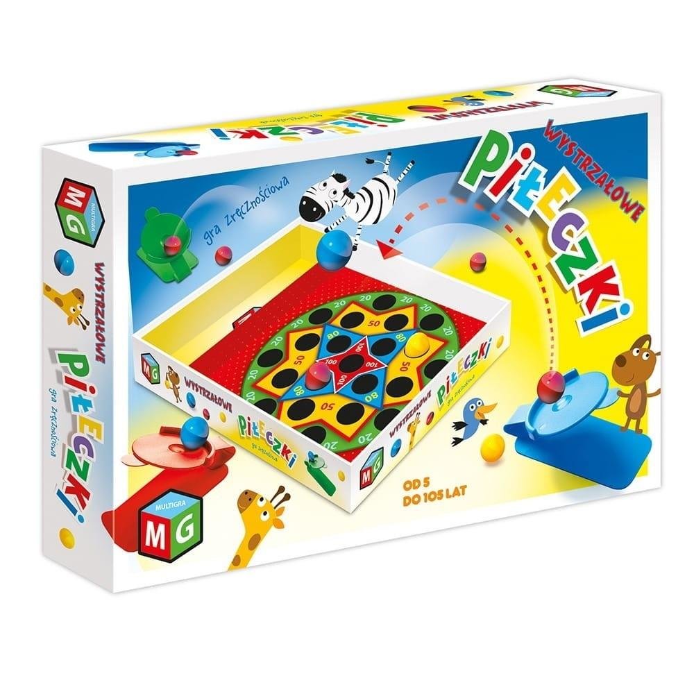 "Wystrzałowe piłeczki" to doskonała gra zręcznościowa w której sprawdzisz swoją celność. Kto z Was wykaże się najbardziej wprawnym okiem i ręką? Za pomocą plastikowych katapult celujemy plastikowymi kulkami do specjalnej tarczy. Trzeba umiejętnie ocenić odległość i precyzyjnie dobrać siłę naprężenia katapulty. Wygra ten, kto trafi w najcelniej w najwyżej punktowane pola.