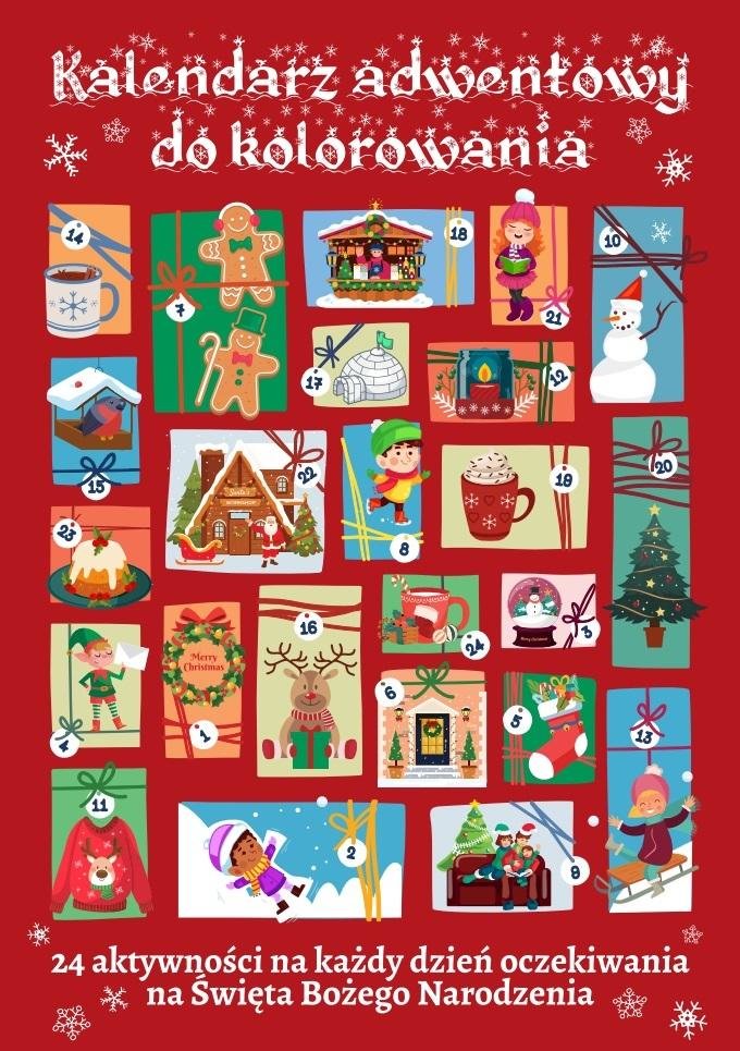 Kalendarz adwentowy do kolorowania. 24 aktywności na każdy dzień oczekiwania na Święta Bożego NarodzeniaOdkryj Magię Świąt z naszym Kalendarzem adwentowym do kolorowania!Dla tych, którzy uwielbiają magię oczekiwania na Boże Narodzenie, przygotowaliśmy wyjątkowy Kalendarz Adwentowy! Każdego dnia...