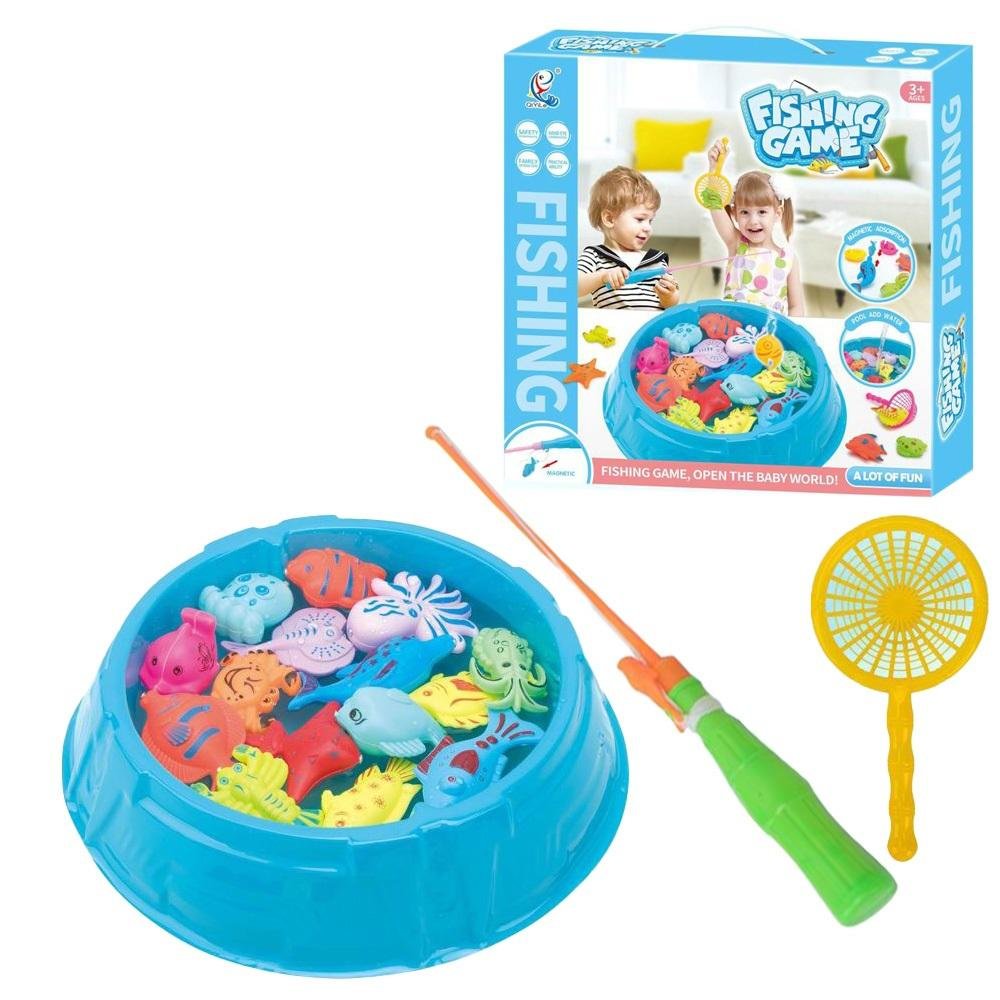 Gra rybki na magnes 20 elementów basen (29.5 x 7 cm), 15 rybek na magnes, 2 wędki, 2 podbieraki wymiary opakowania: 29.5 x 7 x 29.5 cm prečítať celé