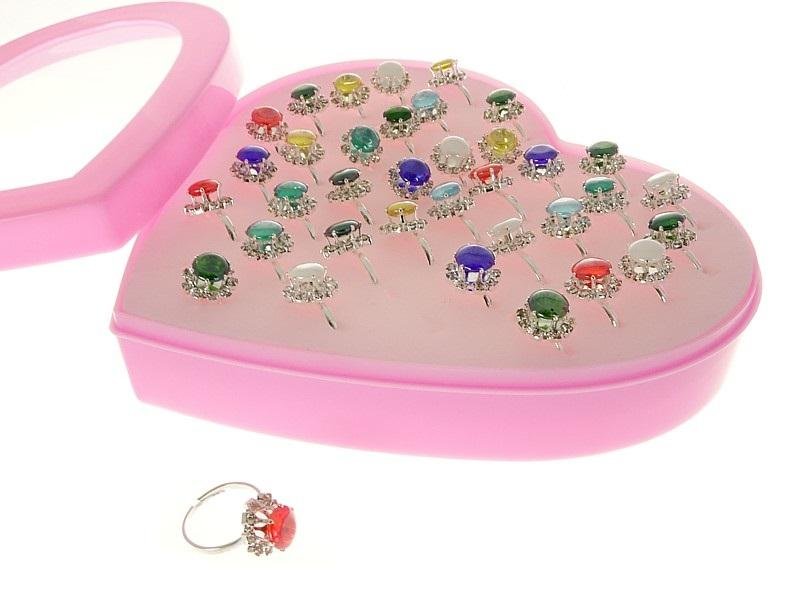 zestaw 36 pierścionków, regulowane w plastikowym etui - serce; Box prečítať celé