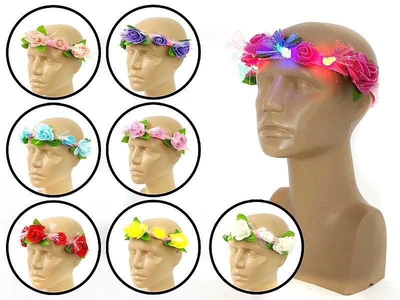 Opaska kwietna na włosy ze światłem 55cm MIX