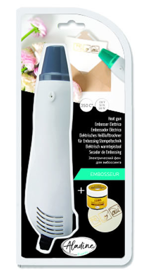Embosovací pistole. Motiv narazítkujte embosovacím médiem a dostatečně zasypte práškem. Přebytek prášku vraťte do krabičky. Obrázek zapečtě horkovzdušnou pistolí. prečítať celé