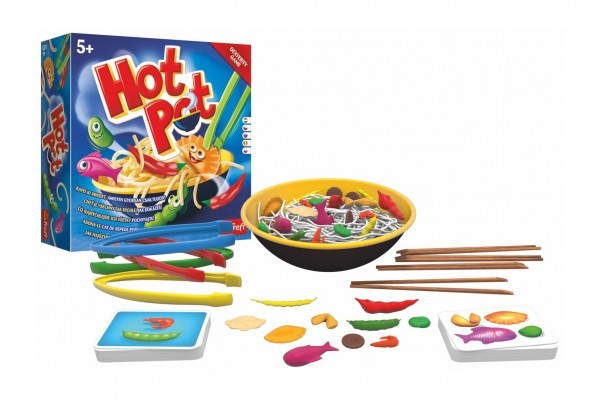 Pokuste se z misky získat správné suroviny! Ale není to tak jednoduché, můžete použít jen kleště nebo hůlky a své hbité ruce. Obsah balení: miska, 4 páry bambusových hůlek, 4 kleště, 40 plastových potravin, gumové nudle, 28 oboustranných karet, návod.