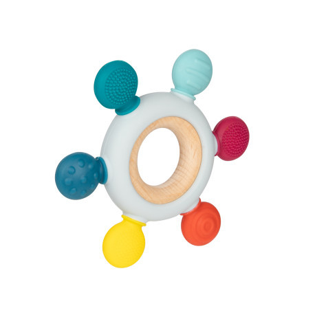 Dřevěno-silikonové kousátko je perfektním řešením při prořezávání zoubků. Je vyrobeno z přírodního bukového dřeva a bezpečného silikonu. Kombinace materiálů různé tvrdosti a textury přinese úlevu miminku při prořezávání zoubků, pomocí kousání a masírování bolavých dásní. Kousátko je lehké a...