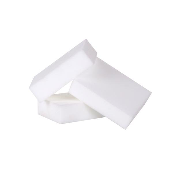 Melaminová houbička - "magická houbička", pro čištění bez chemických prostředků. Houbičku lehce navlhčíme vodou a mírným tlakem nečistoty vygumujeme. Účinně odstraňuje odolné nečistoty (od podrážek bot, fixů, zaschlého tuku, vodního kamene) ze všech hladkých povrchů (obklady, dlažby, sklo, kov,...