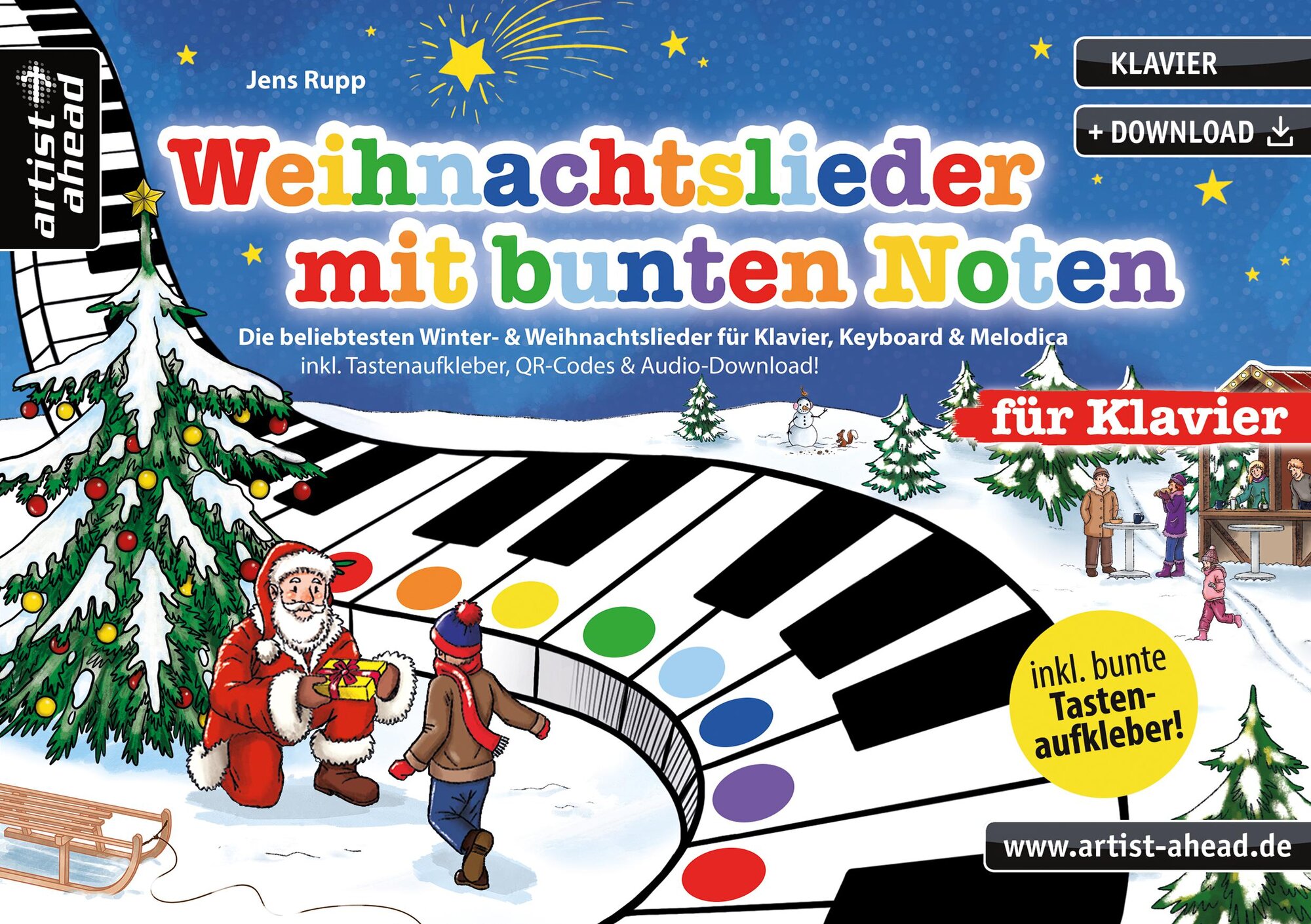 Weihnachtslieder mit bunten Noten für Klavier (německy)