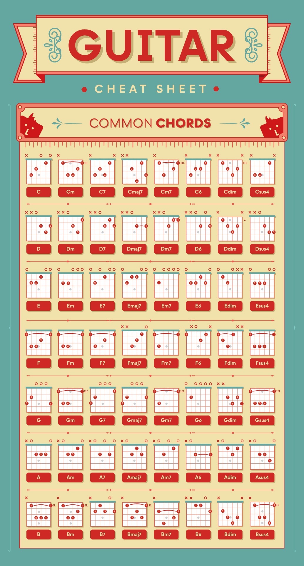 Plakát s prstoklady nejpoužívanějších kytarových akordů. prečítať celé