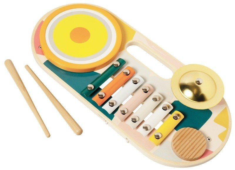 Muzyczna zabawka Beats to Go zawiera bębenek, parę pałeczek, drewniany grzebień, talerz i 7-klawiszowy ksylofon. Zabawka ma uchwyt do łatwego przenoszenia oraz trzy nogi zapewniające stabilizację, dzięki czemu instrument nie chwieje się.Wymiary: 31 x 18,5 x 27 cm prečítať celé
