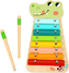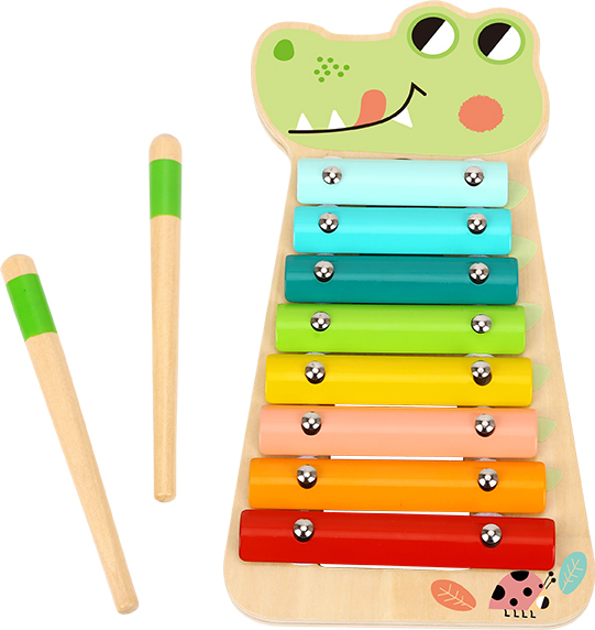 Xylofón s motívom krokodíla zaujme vaše deti naplno. Vďaka farbám jednotlivých kláves si dieťa ľahko zapamätá jednoduché melódie. Súčasťou balenia sú aj dve paličky, vďaka ktorým môže hrať na xylofóne ako pravý hudobník.