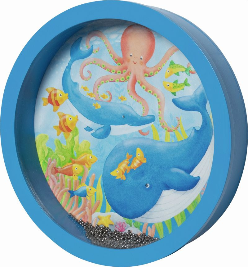 Każdy ruch zamienia się w falujący rytm oceanu, a małe dłonie mogą poczuć dźwięk i ruch wody. Drewniany bębenek z realistycznym brzmieniem pobudza wyobraźnię i rozwija muzyczne zdolności dziecka. Wykonany z wysokiej jakości materiałów: drewna, metalu i naturalnej skóry zapewnia wyjątkową trwałość i autentyczne dźwięki. Zabawa nim uczy rytmu i koncentracji, a piękne podwodne ilustracje czynią go jeszcze bardziej wyjątkowym.