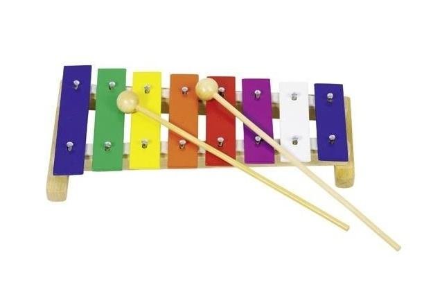 Cymbałki, a ściślej rzecz ujmując metalofon. To instrument z którym każde dziecko spotka się w przedszkolu i szkole. Ale warto już w domu zacząć ćwiczyć. Osiem magicznych metalowych sztabek, wydających określone dźwięki. Ułożone w odpowiedniej kolejności i kolorach, pomogą dziecku zaznajomić się z gamą dźwięków. Na pewno będzie też instrumentem do ćwiczenia koordynacji oko-ręka i precyzji uderzeń.