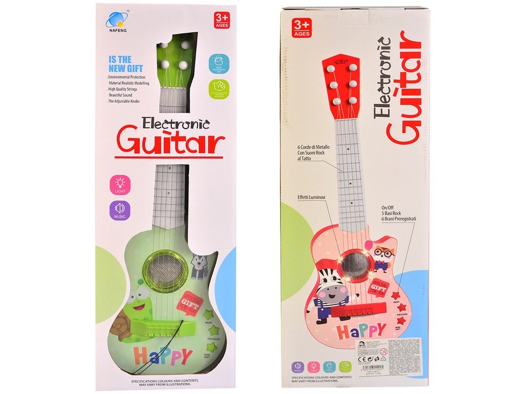 Kytara elektronická, 54 cm Hračka je určena pro děti . Rozměr hračky je 6 x 54 x 18 cm. Materiál hračky je plast. Balení hračky je window box. Produkt je určený pro kohokoliv. Ke zprovoznění produktu jsou potřeba 3 AA baterie. Baterie nejsou součástí balení. prečítať celé
