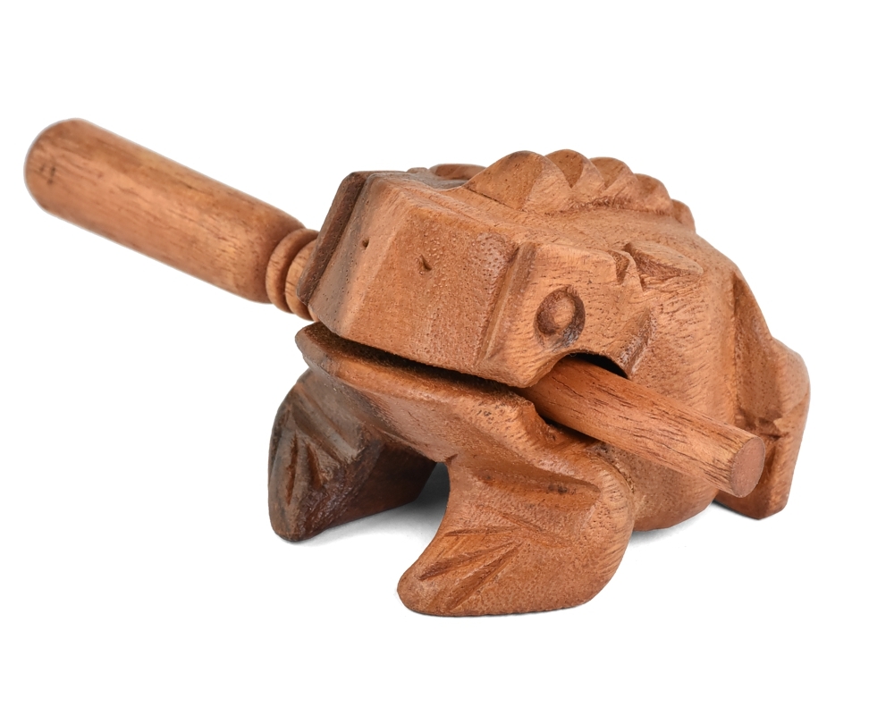 Populární thajská hudební hračka vyrobená ekologicky ze zbytků dřeva zbylých z výroby větších dřevěných objektů. Každý kus je rukodělný originál a proto se může od fotografie drobně lišit, jak barvou, tak i provedením. Přejížděním po výstupcích na zádech žáby docílíte originálního skřehotavého...