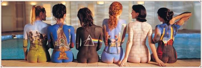 Oficiální plakát z katalogu módních fashion výrobků a merchandise produktů s licencovaným logem, grafikou a fotografiemi britské skupiny Pink Floyd.