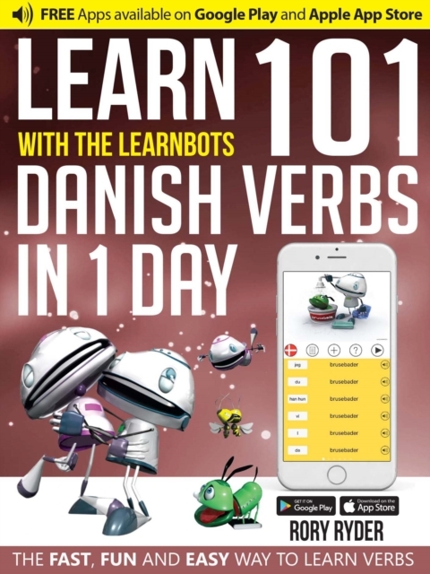 Quirky LearnBots Verbito and Verbita, buzzy robo-bees and a mischievous canine called CyberDog, present the 101 most commonly used Danish verbs, with each verbs's infinitive cleverly incorporated into each illustration for further reinforcement. Each verb also comes with its own unique colour coded verb table and kick-starter app!