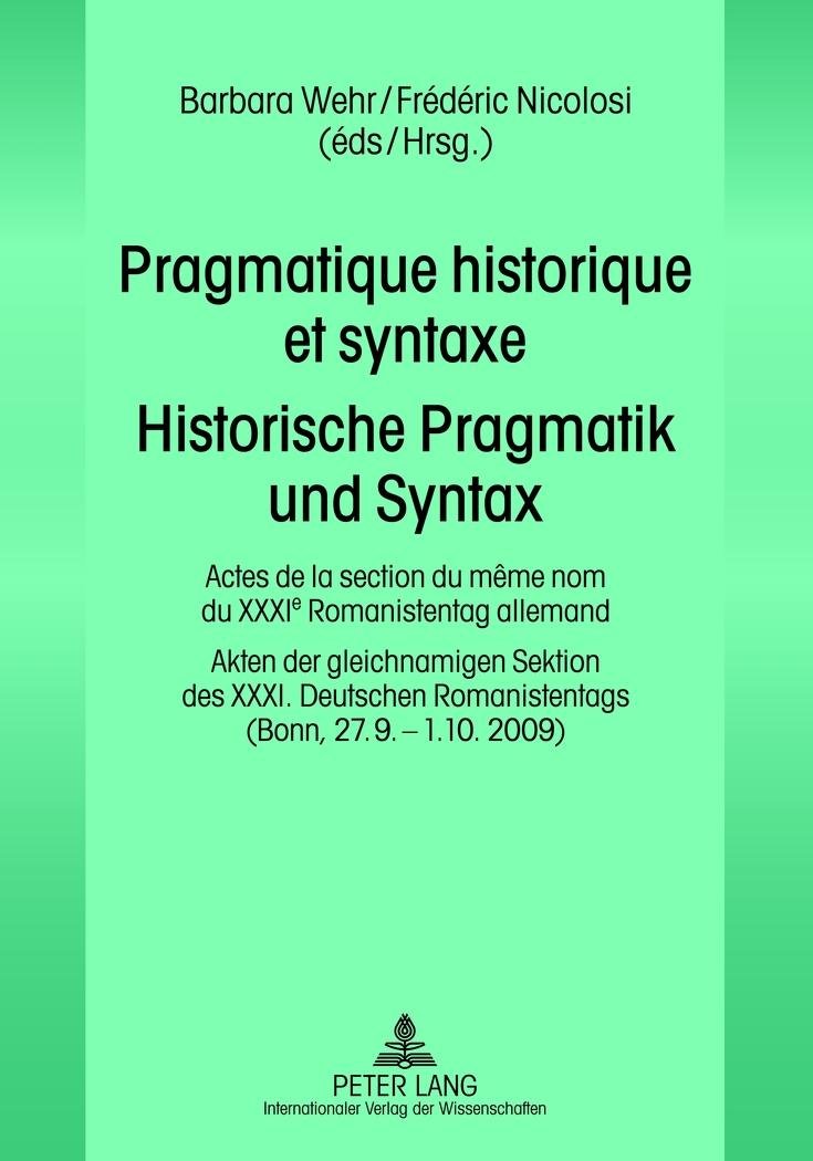 Pragmatique historique et syntaxe. Historische Pragmatik und Syntax