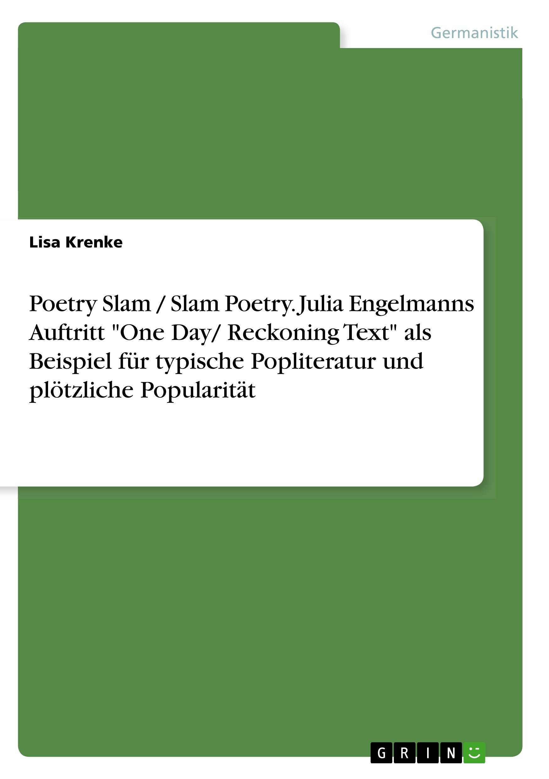 Poetry Slam / Slam Poetry. Julia Engelmanns Auftritt \"One Day/ Reckoning Text\" als Beispiel für typische Popliteratur und plötzl (německy)