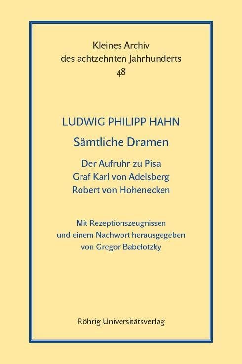 Sämtliche Dramen: Der Aufruhr zu Pisa - Graf Karl von Adelsberg - Robert von Hohenecken (německy)