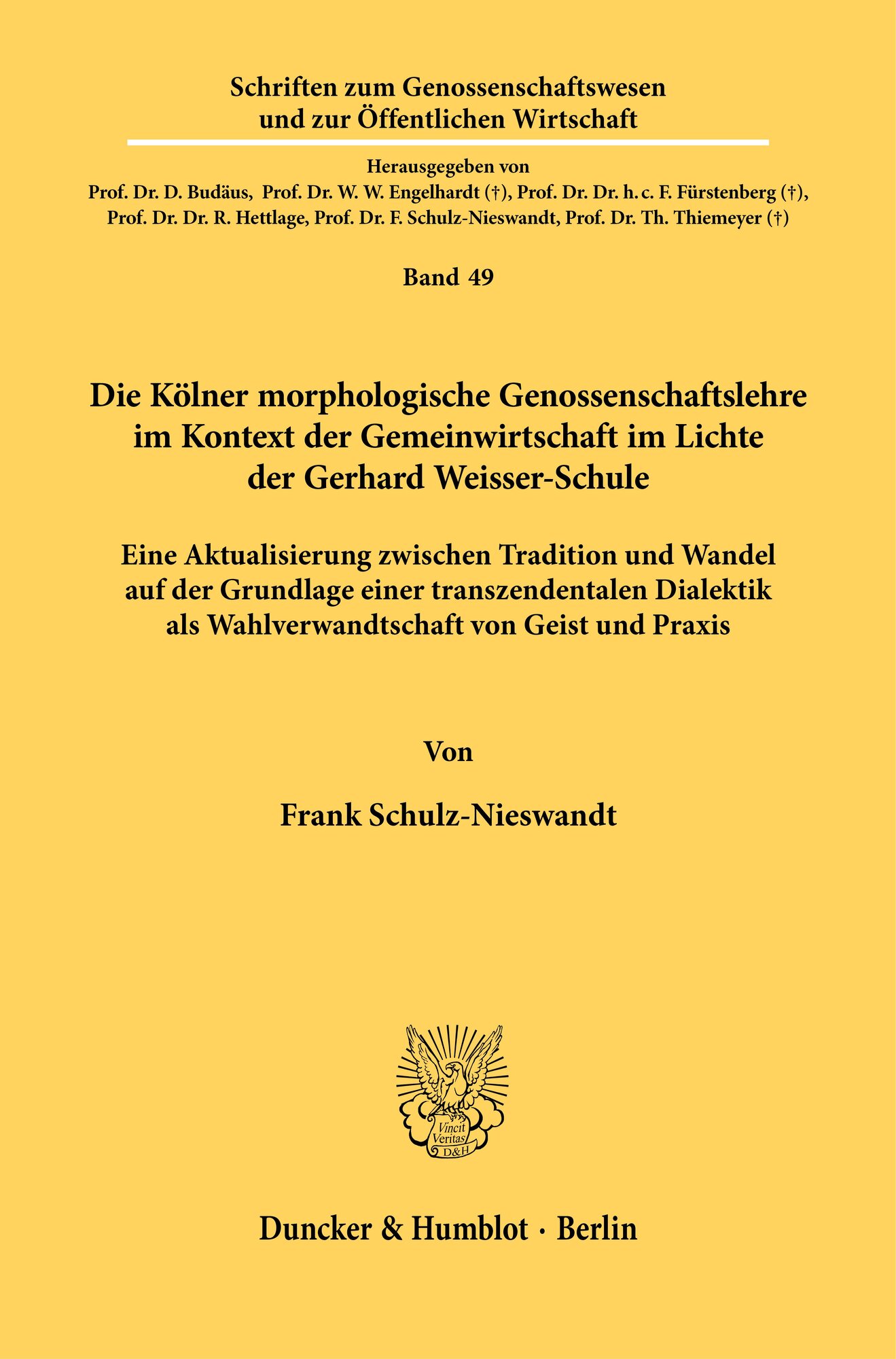 Die Kölner morphologische Genossenschaftslehre im Kontext der Gemeinwirtschaft im Lichte der Gerhard Weisser-Schule (německy)
