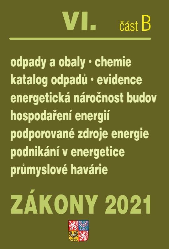 Zákony VI B obsahují právní předpisy pro oblast odpadů, obalů, energií a prevence průmyslných havárií. Tento rok vyšel nový zákon o odpadech a zákon výrobcích s ukončenou životností. Dále jsme přidali novou vyhlášku o energetické náročnosti budov, novou vyhlášku o energetických specialistech, chemický zákon … Všechny právní předpisy obsahují novely zákonů schválených během roku 2020 k právnímu stavu 1. 1. 2021. Všechny změny jsou vyznačené tučným písmem.