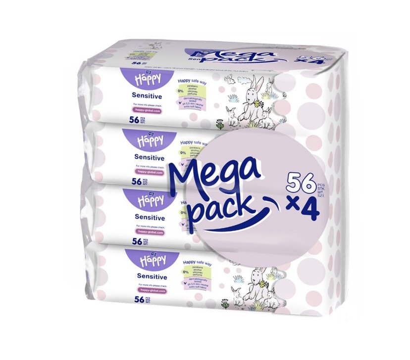 Bella Baby Happy vlhčené ubrousky s aloe vera MEGA PACK 4 x 56 ks