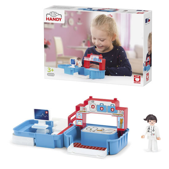 Pro všechny nemocné a zraněné Igráčky je tady moderní nemocnice s EKG a milou paní doktorkou, která vylečí všechy neduhy. IGRÁČEK HANDY jsou praktická skládací herní prostředí, která si můžeš vzít všude s sebou. Originální provedení bez tradiční střechy nabízí dítěti nový úhel pohledu a přirozeně rozvíjí prostovou představivost. Vyrobeno v České republice.