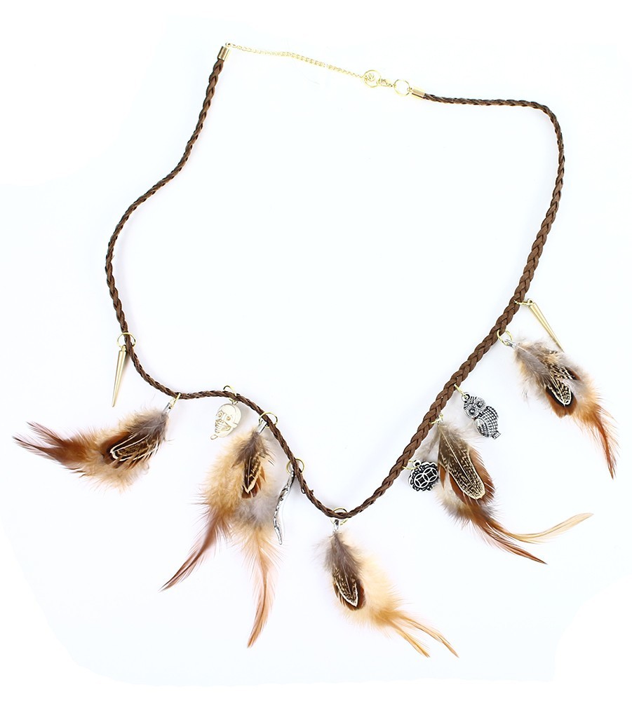 Indiánský náhrdelník s bažantím peřím