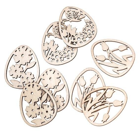 Drewniane ażurowe jajka 5cm 9szt mix wzorów