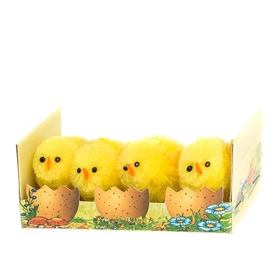Mini kurczaczki z delikatnego, puszystego materiału w przezroczystym pudełeczku to doskonałe dopełnienie wielkanocnych projektów i aranżacji, takich jak wieńce, stroiki, koszyczki, element aranżacji stołu ale także dziecięcych projektów kreatywnych.