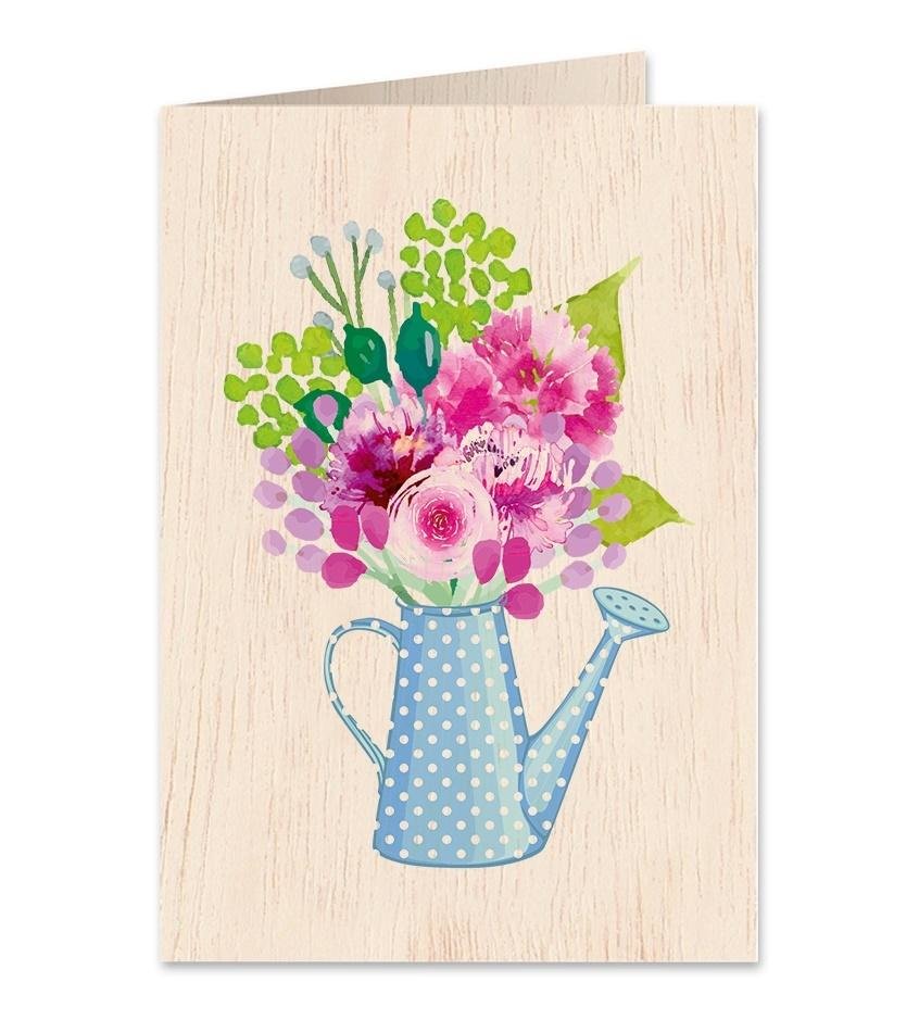 Karnet drewniany C6 + koperta Kwiaty w konewce