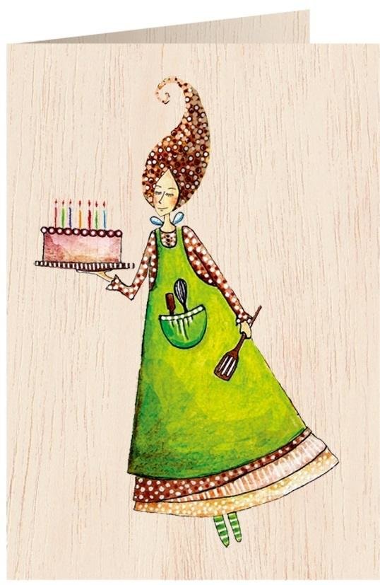 Karnet drewniany C6 + koperta Tort ze świeczkami
