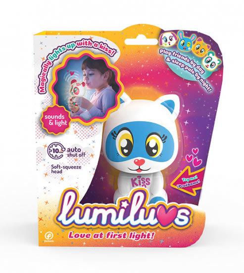 Zvířátko reaguje interaktivně, stačí když děti dají pusinku na čeníšek a ono se jim rozsvítí. Potvrdí jim tak, že má radost. Přednosti: - zvířátko umí svítit a vydávat zvuky. Světélko se po deseti minutách samo vypne. Vhodné pro děti od 3 let. Výška 11 cm. Baterie jsou součástí balení.