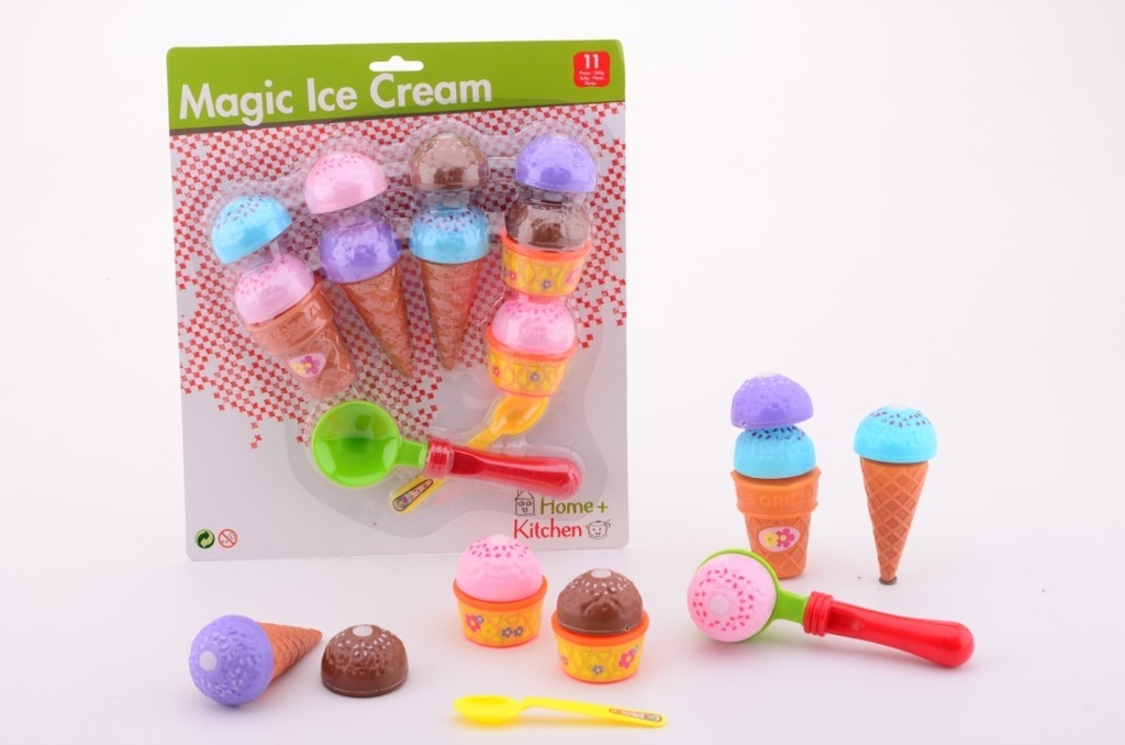Plastová sada zmrzlin pro malé kuchařky. Sada obsahuje různé druhy kornoutků, kopečky zmrzliny, lžičku a tvořítko na kopečky. prečítať celé
