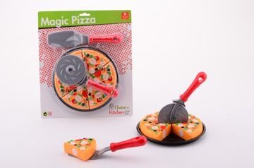 Magická pizza – sen každého malého kuchaře. Sada obsahuje pizzu, kráječ na pizzu, pánvičku a naběračku. Pizzu si může malý kuchař rozkrájet a nandat pomocí naběrátka, vše je spojeno magnety. prečítať celé