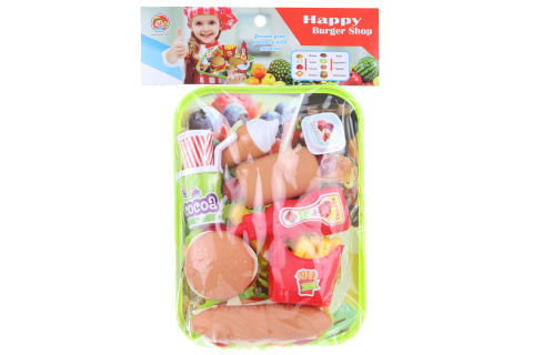 Sada jídla obsahuje hamburger (jednotlivé ingredience hamburgeru lze na sebe skládat), bagetu, hotdog, kečup, kelímek, hranolky a další doplňky. Rozměry balení cca 24 x 35 x 7 cm. Věk 3+ prečítať celé