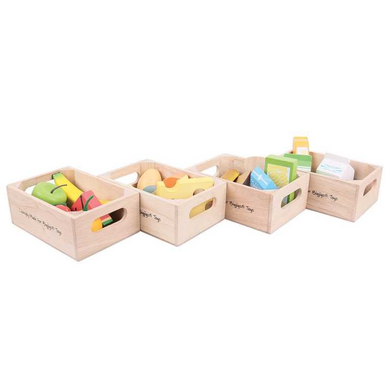 Součástí balení jsou 4ks dřevěných boxů s dřevěnými potravinami dle obrázku. Anglická značka Bigjigs Toys byla založena roku 1985 a zpočátku se zabývala výrobou pouze dřevěných puzzlí. Majitelé vyráběli vše ručně s láskou v malém zahradním domku, své výrobky prodávali na trhu. Spokojení zákazníci...