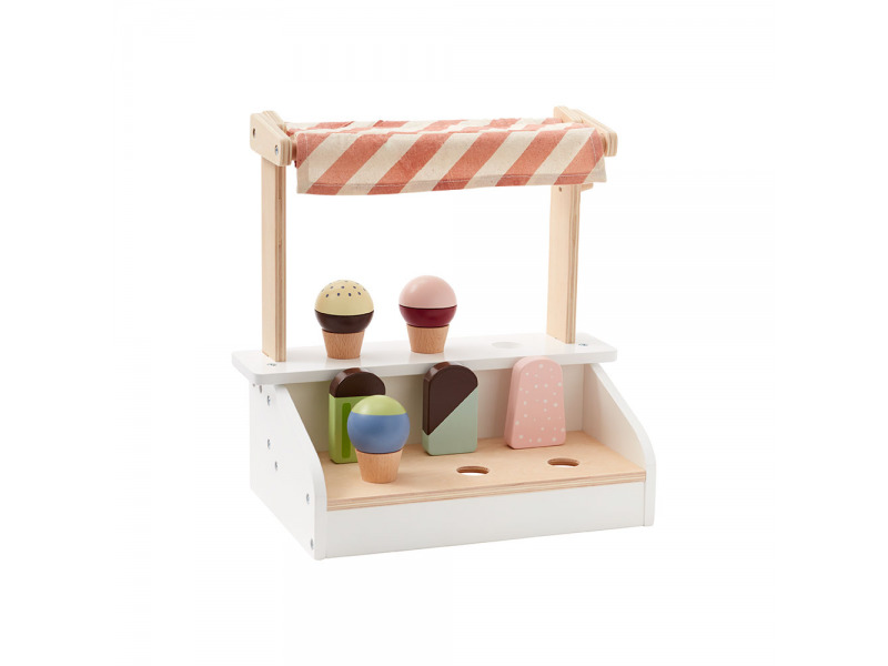Prodejní stojan se třemi zmrzlinami v kornoutu a třemi nanuky v dřevěném provedení je nezbytnou součástí dětské cukrárny.Stojan se zmrzlinou a nanuky je součástí ucelené kolekce dřevěných hraček Kids Concept Bistro.Rozměry: 30 x 30 x 19 cmVhodné pro děti od 3 let. prečítať celé